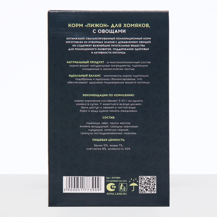 Корм "Пижон" для хомяков, с овощами