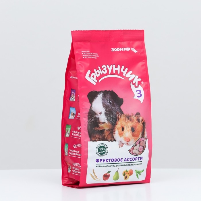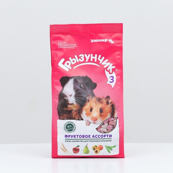 Корм-лакомство "Зоомир Грызунчик 3" для грызунов и кроликов, фруктовое ассорти, 200 г