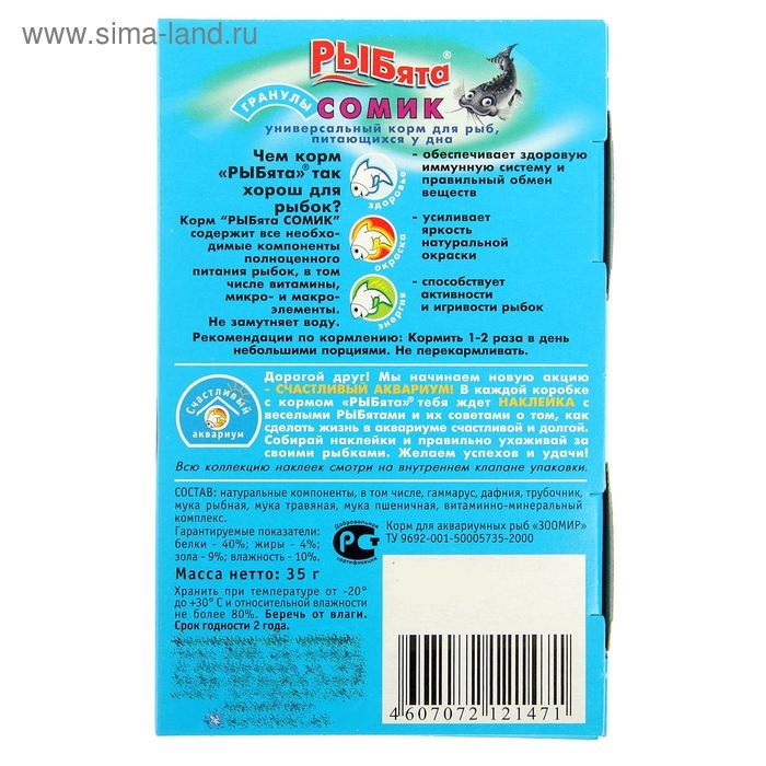Корм "РЫБята СОМИК" (+ сюрприз) для донных рыб, гранулы, 35 г