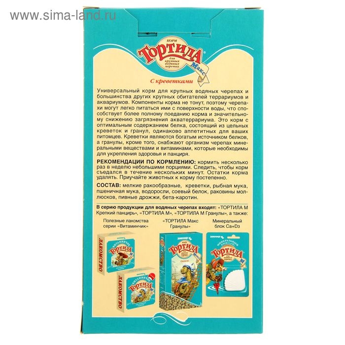 Лакомство "Тортила МАКС" для крупных водяных черепах, с креветками, 70 г.