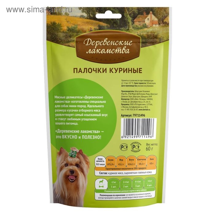 Палочки куриные "Деревенские лакомства" для собак мини-пород, 55 г