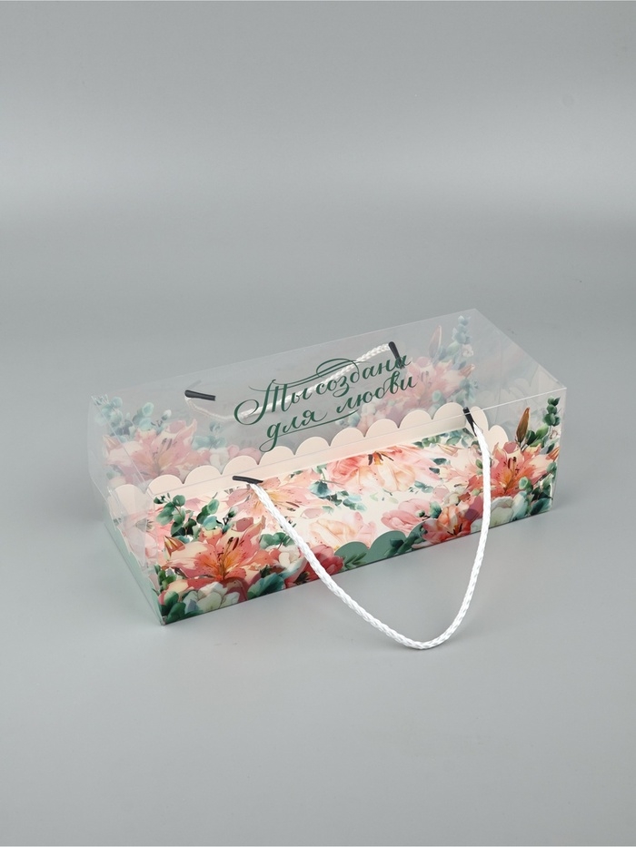 Коробка под зефир c ручками «Нежные цветы», 27 х 11 х 9,5 см, кондитерская упаковка