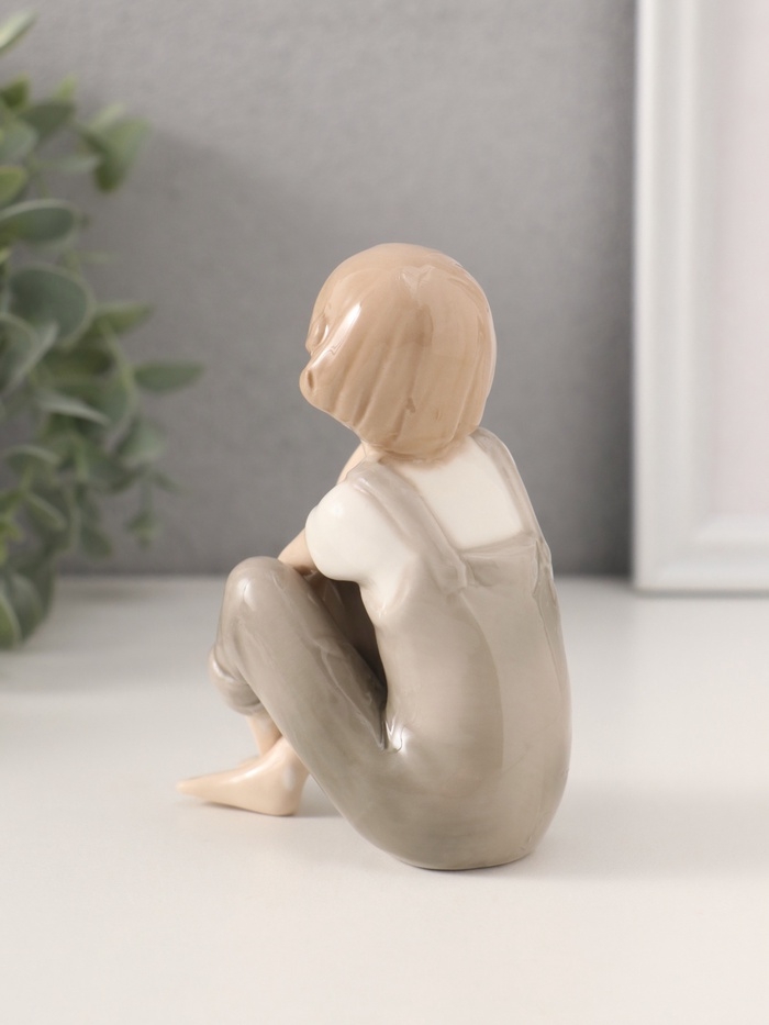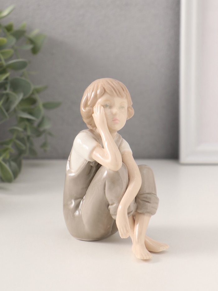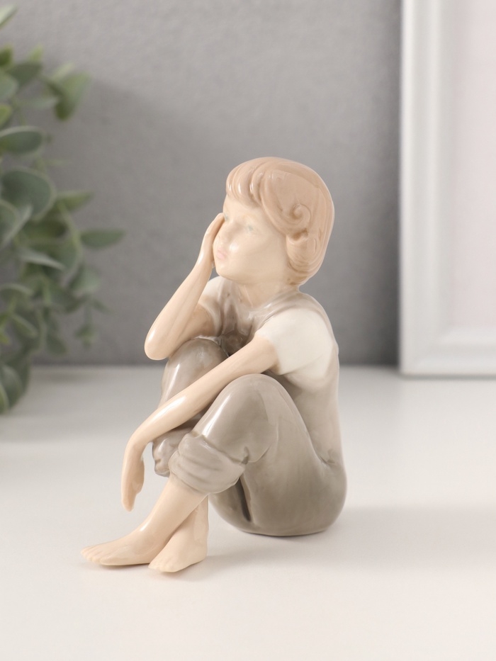 Сувенир керамика "Мальчик в комбинезоне сидит скрестив ноги" 4x8x10 см