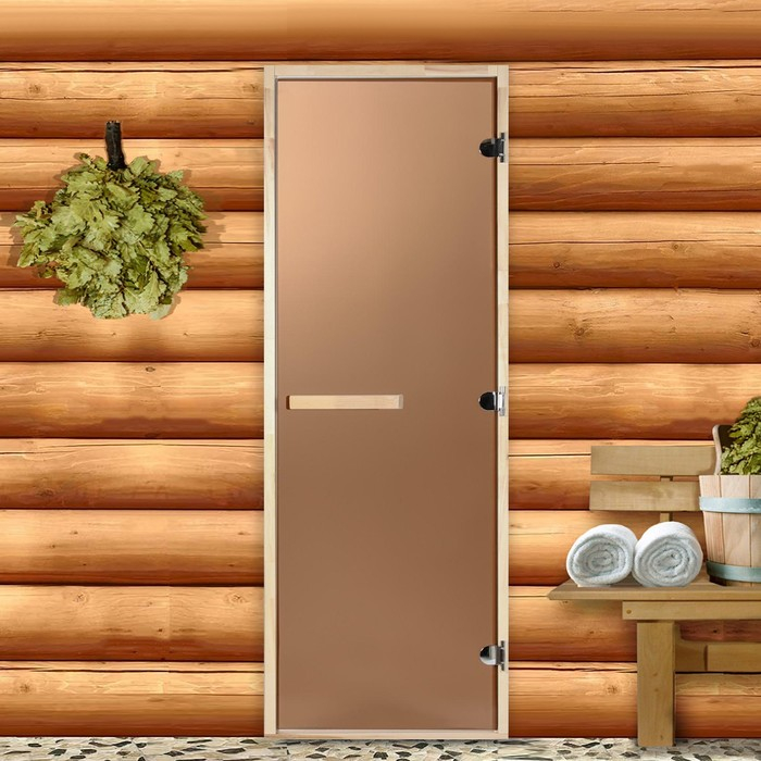 Дверь для бани и сауны стеклянная "Бронза", размер коробки 190х67, 8мм