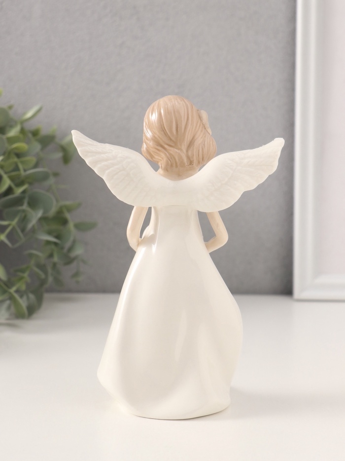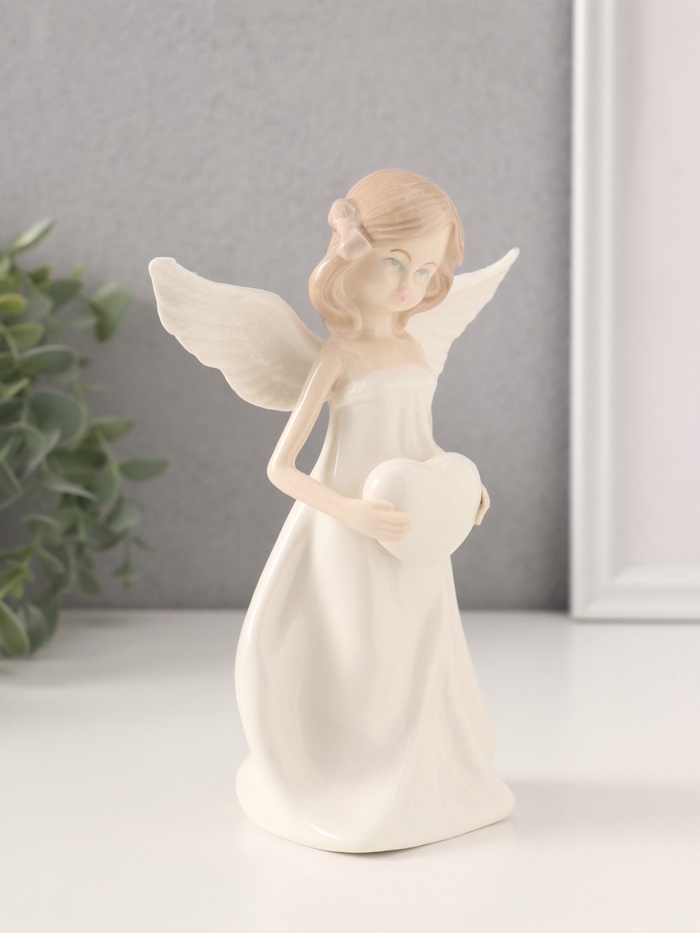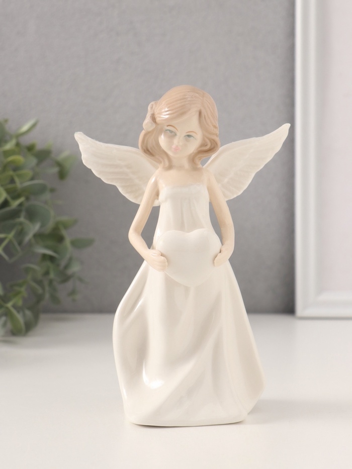 Сувенир керамика "Девочка-ангел в белом платье с сердечком" 5,5х10,5х15 см