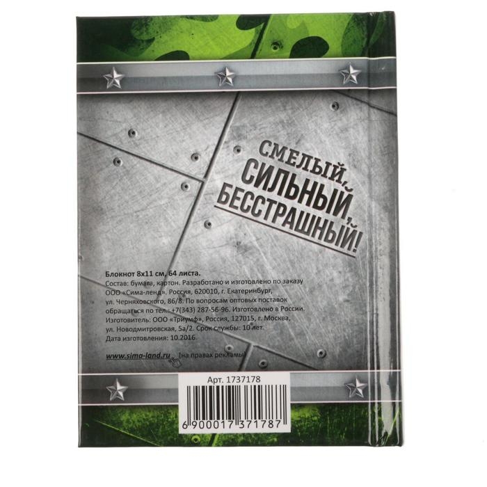 Блокнот А7, 64 листа в твердой обложке «С 23 февраля»