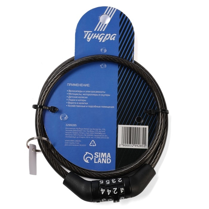 Замок навесной велосипедный ТУНДРА, кодовый, 6х650 мм