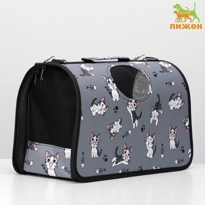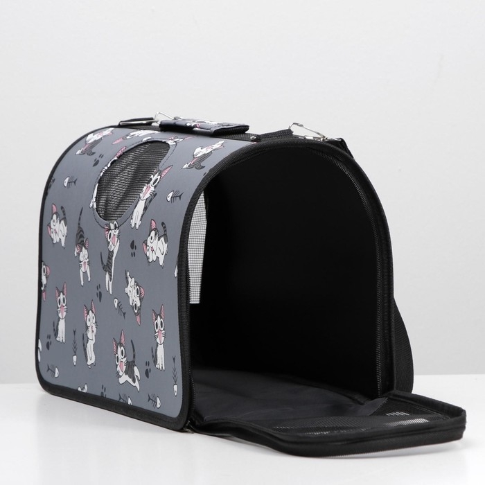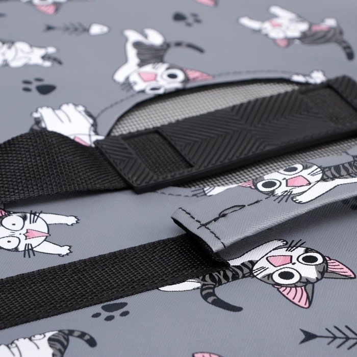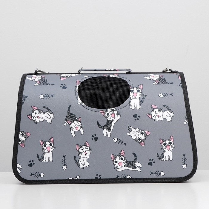 Сумка-переноска каркасная "Играющие котики", размер M, 40 х 21 х 27 см, серая