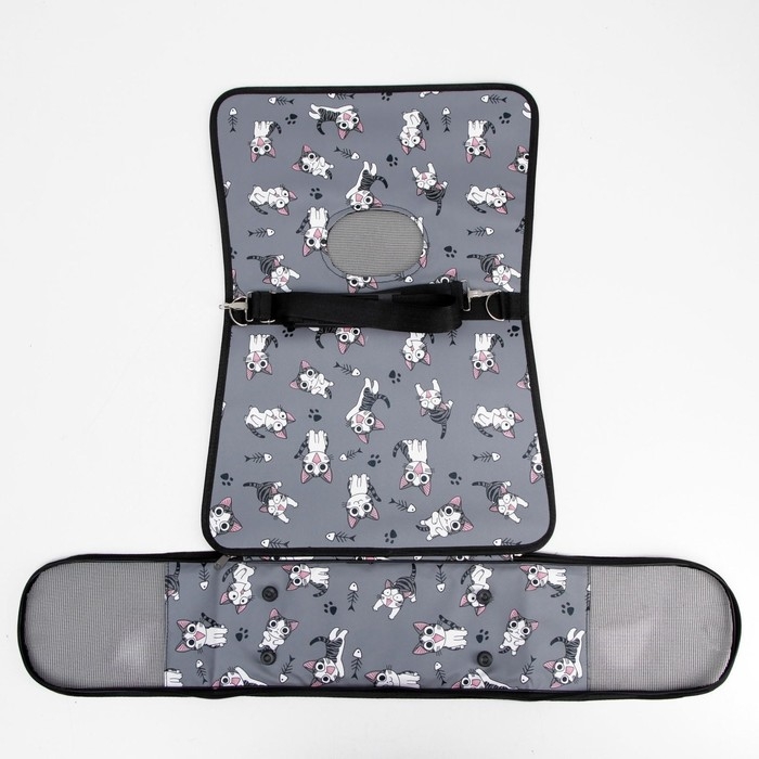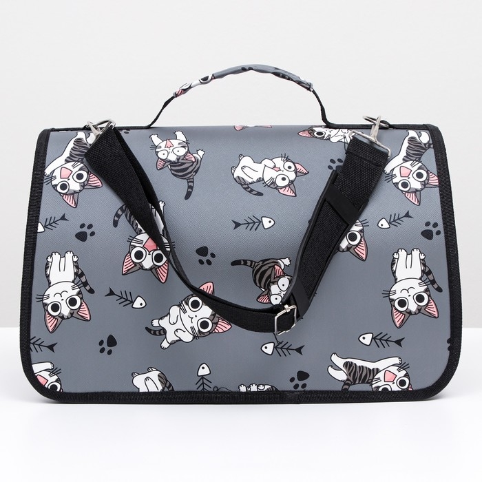 Сумка-переноска каркасная "Играющие котики", размер S, 37,5 х 17 х 22 см, серая