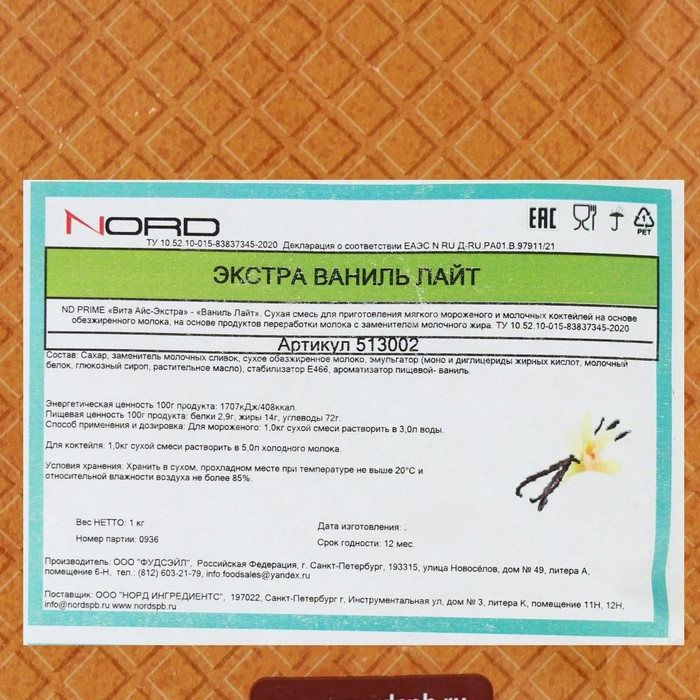 Сухая смесь для мягкого мороженого «Вита-Айс лайт» ванильная, 1 кг