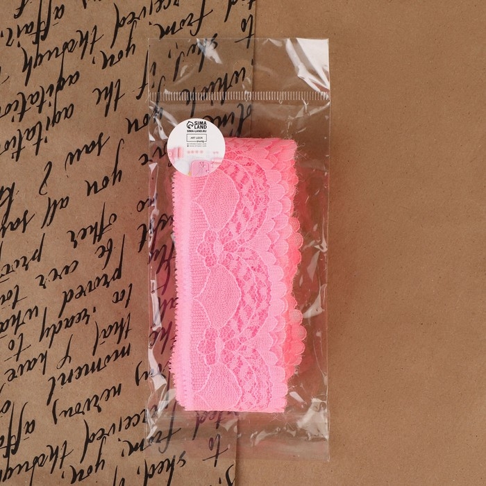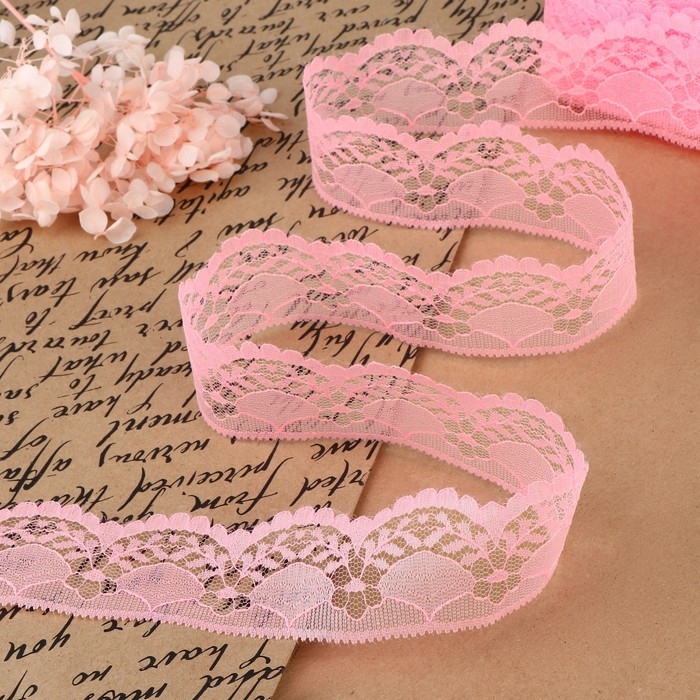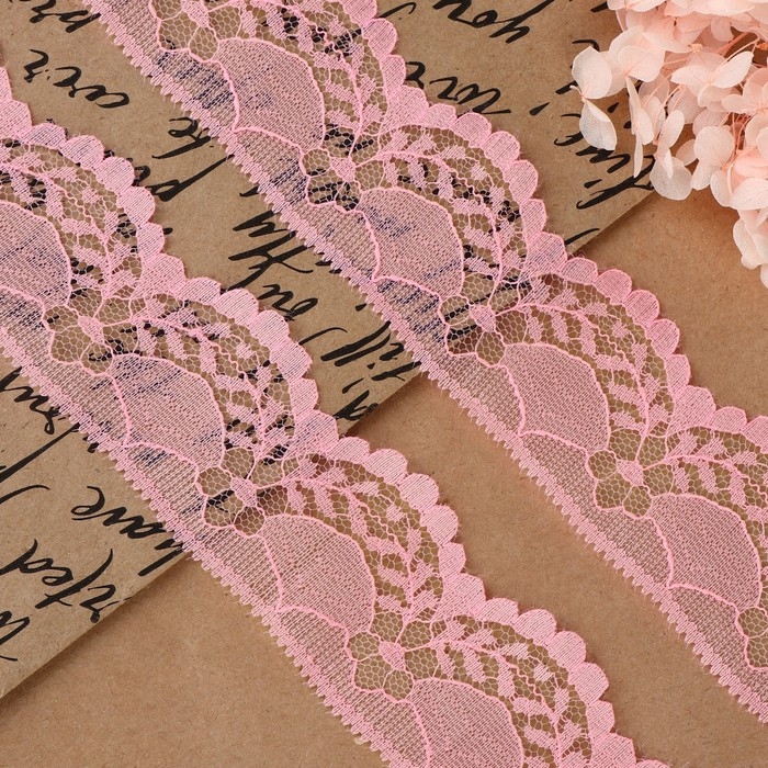 Кружево капроновое, 40 мм × 10 ± 1 м, цвет розовый