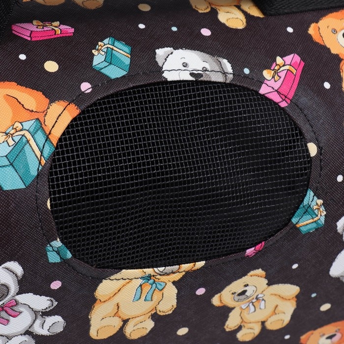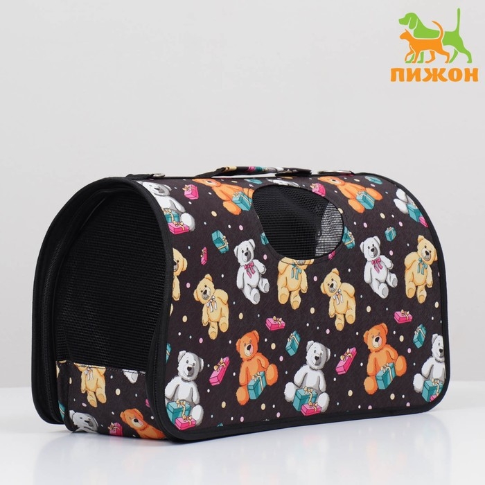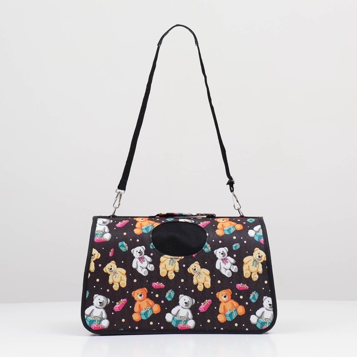 Сумка-переноска каркасная "Медведи на черном фоне", размер L, 52 х 28 х 28 см