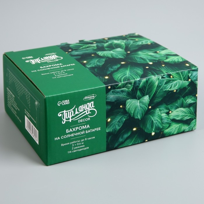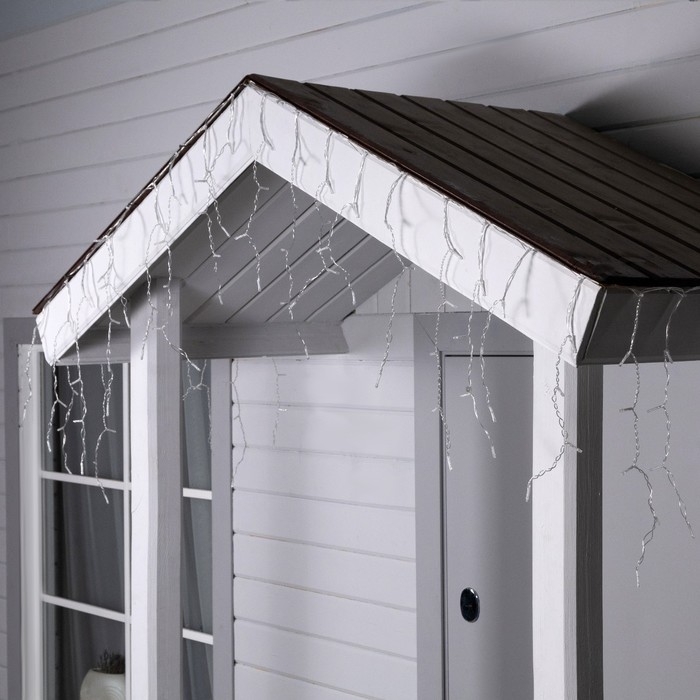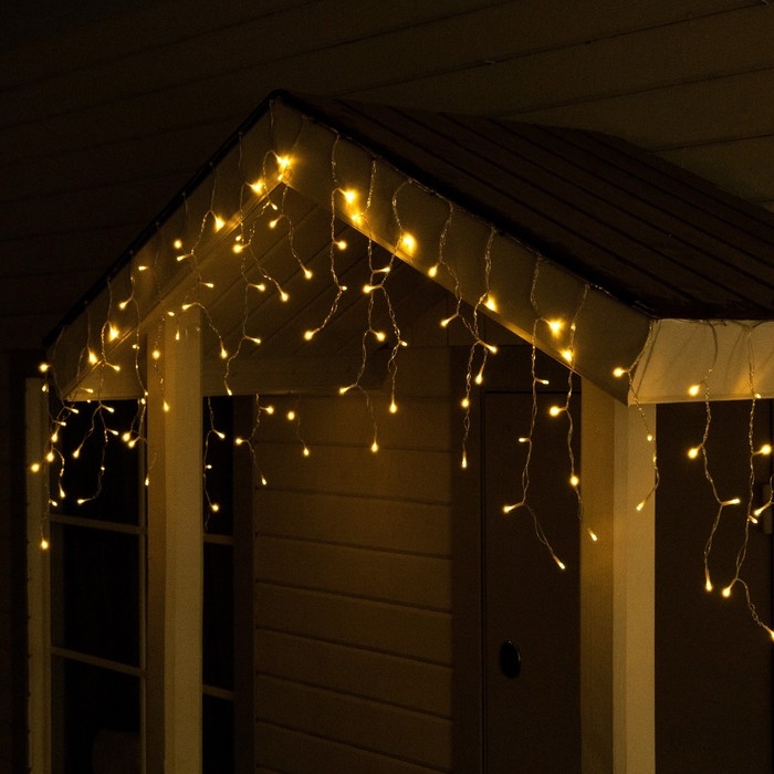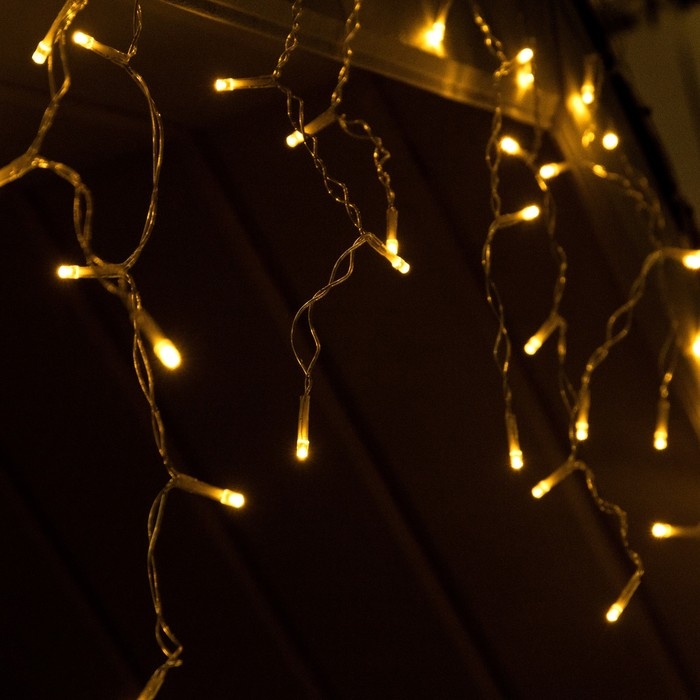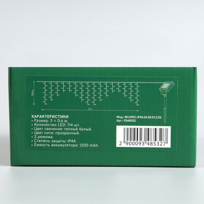 Гирлянда «Бахрома», 3×0.6 м, IP44, 114 LED, 8 режимов, солнечная батарея, прозрачная нить, свечение тёплое белое