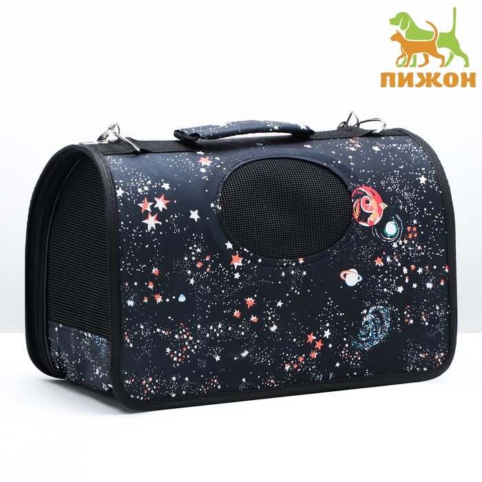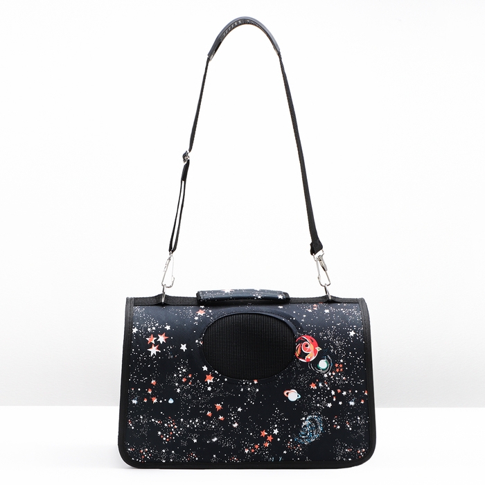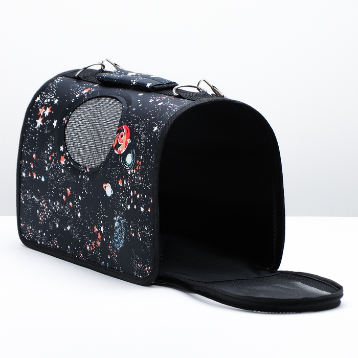 Сумка-переноска каркасная "Звёздное небо", размер S, 37,5 х 17 х 22 см, чёрная