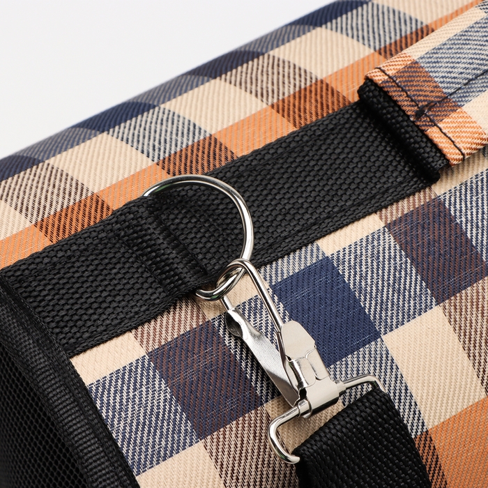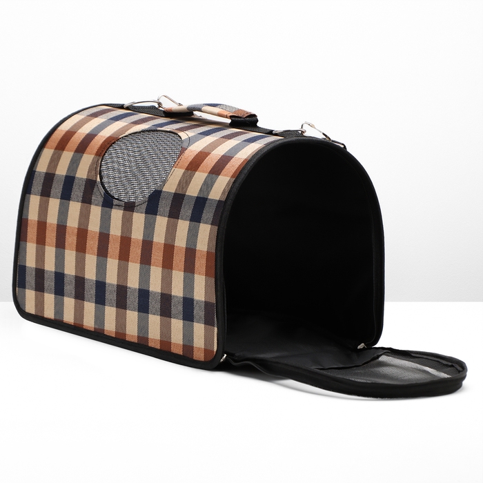 Сумка-переноска каркасная, со шторкой, размер M, 43 х 21 х 26 см, клетчатая