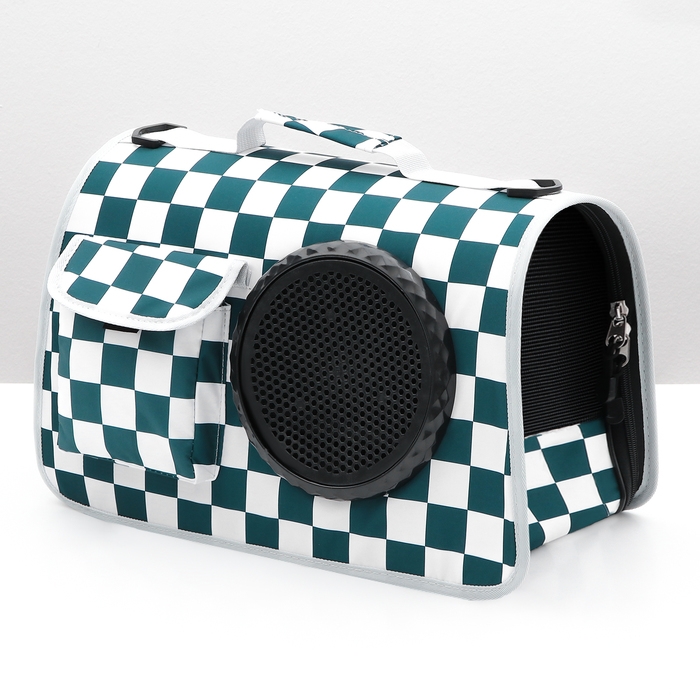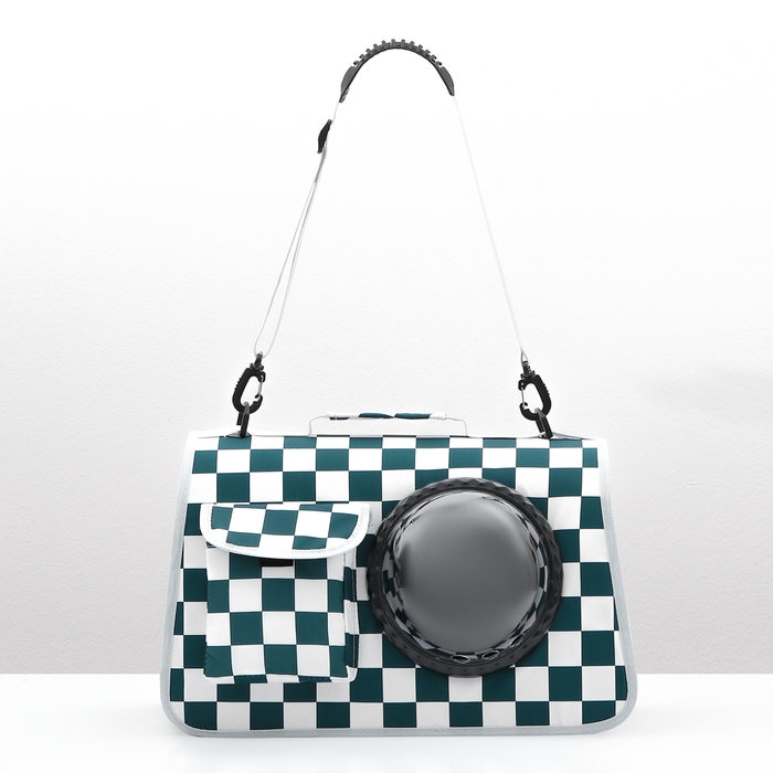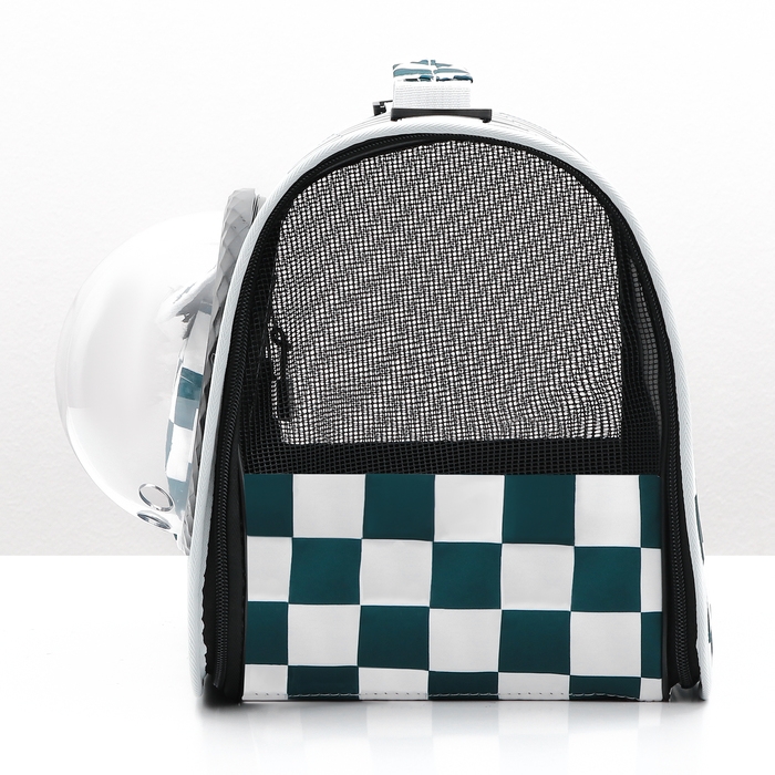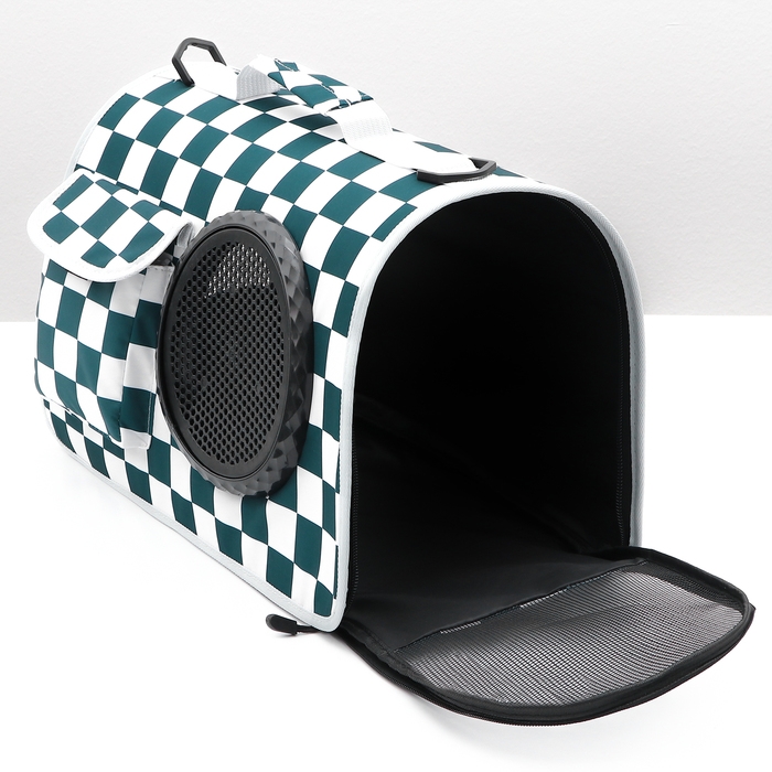 Сумка-переноска с органайзером и иллюминатором, 43 х 24 х 28 см, белая/зелёная