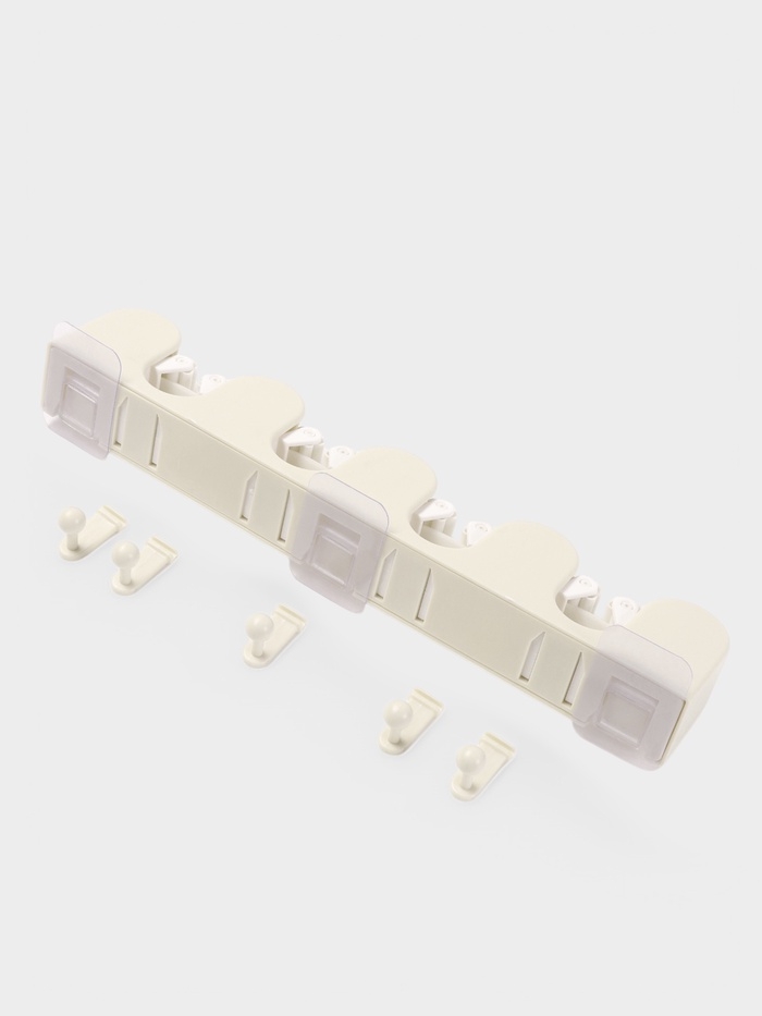 Держатель для швабр настенный самоклеящийся, 4 отделения, 33х6х6