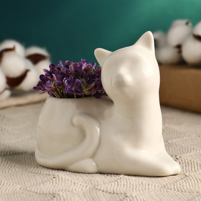 Горшок "Котенок" белый, 13х10,5х12,5см