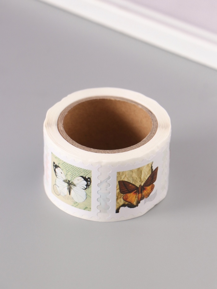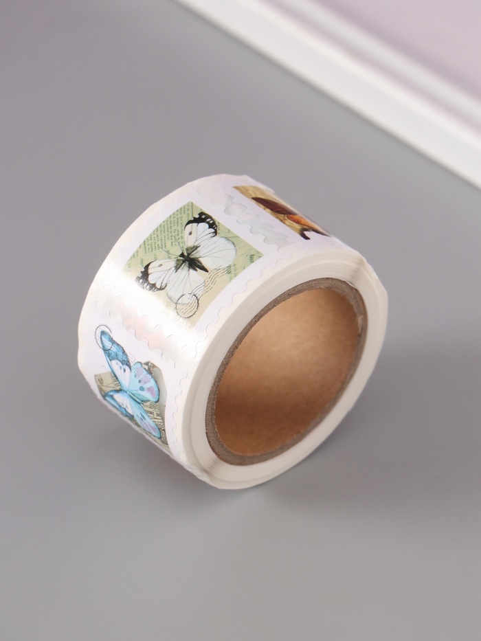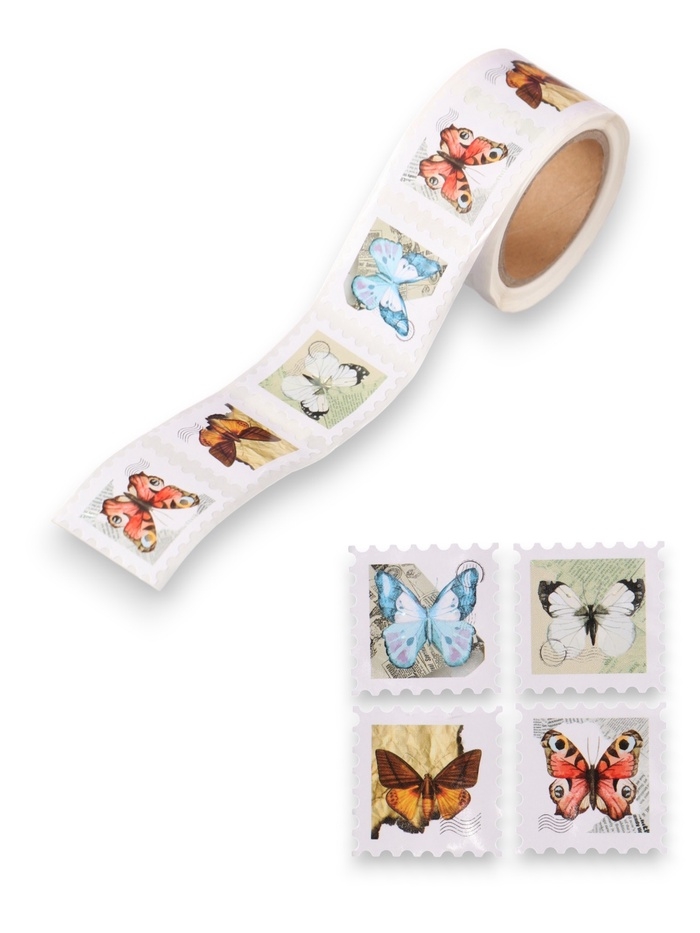 Наклейка бумага "Марки. Бабочки" 3х3 см 200 шт в рулоне