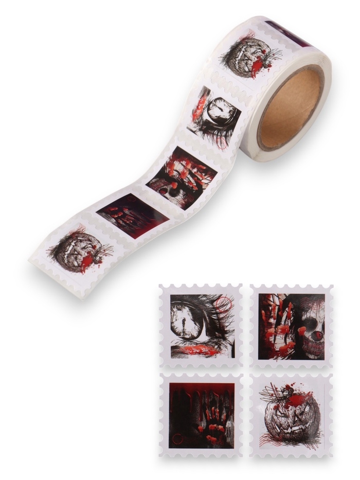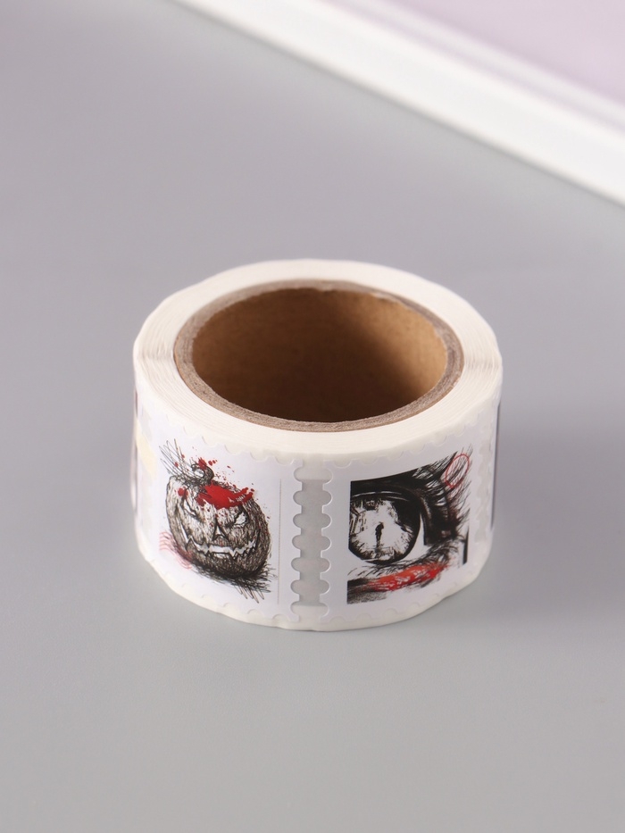 Наклейка бумага "Марки. Хэллоуин" 3х3 см 200 шт в рулоне
