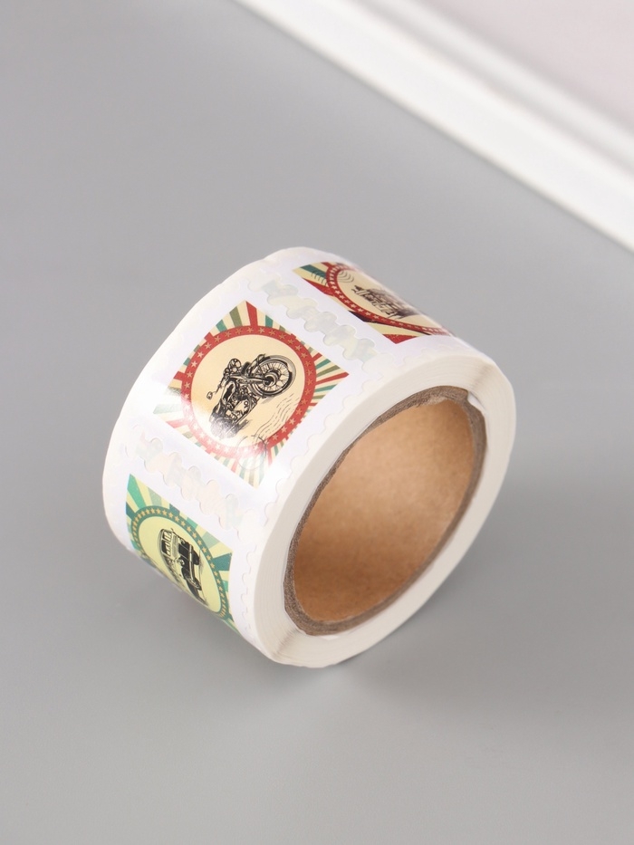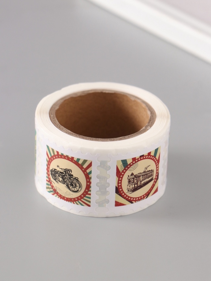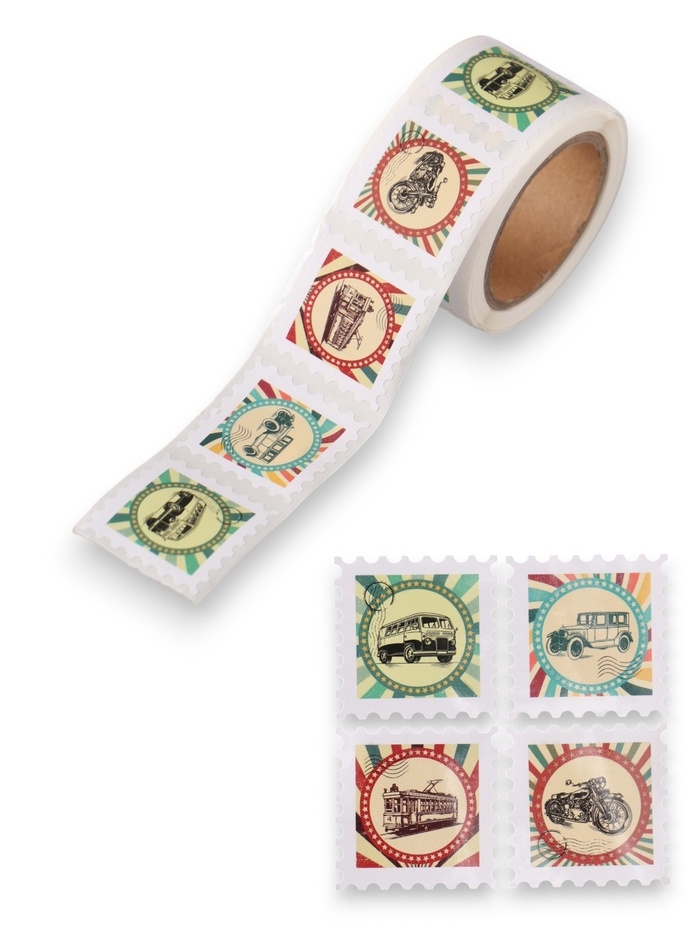 Наклейка бумага "Марки. Ретро транспорт" 3х3 см 200 шт в рулоне
