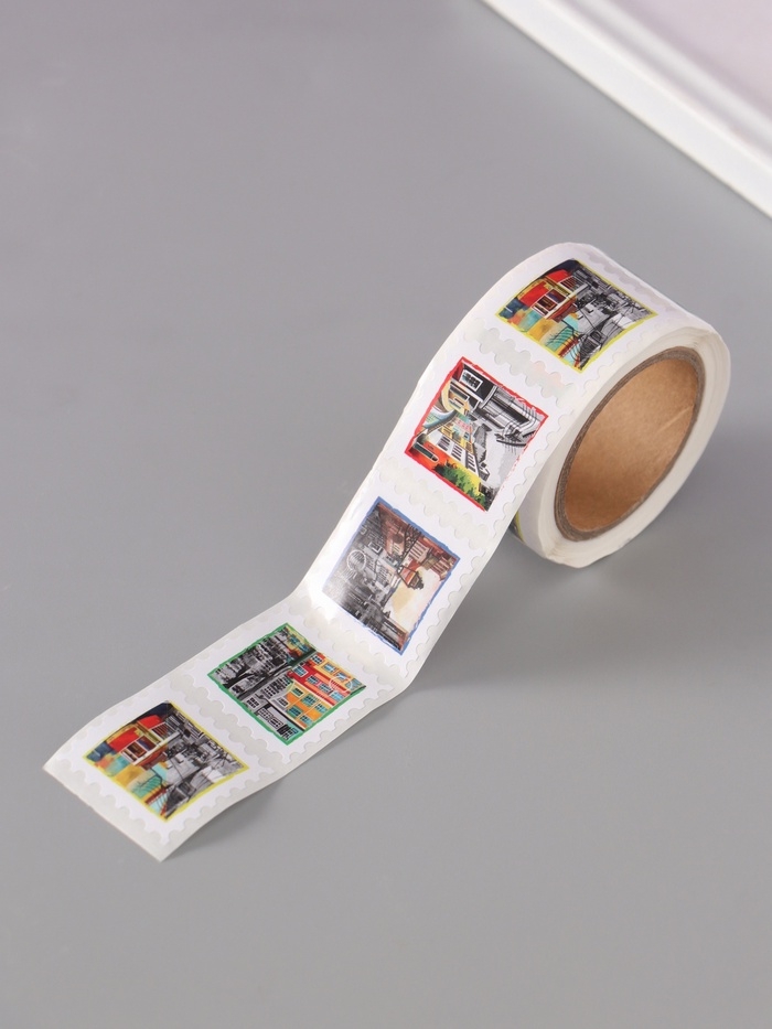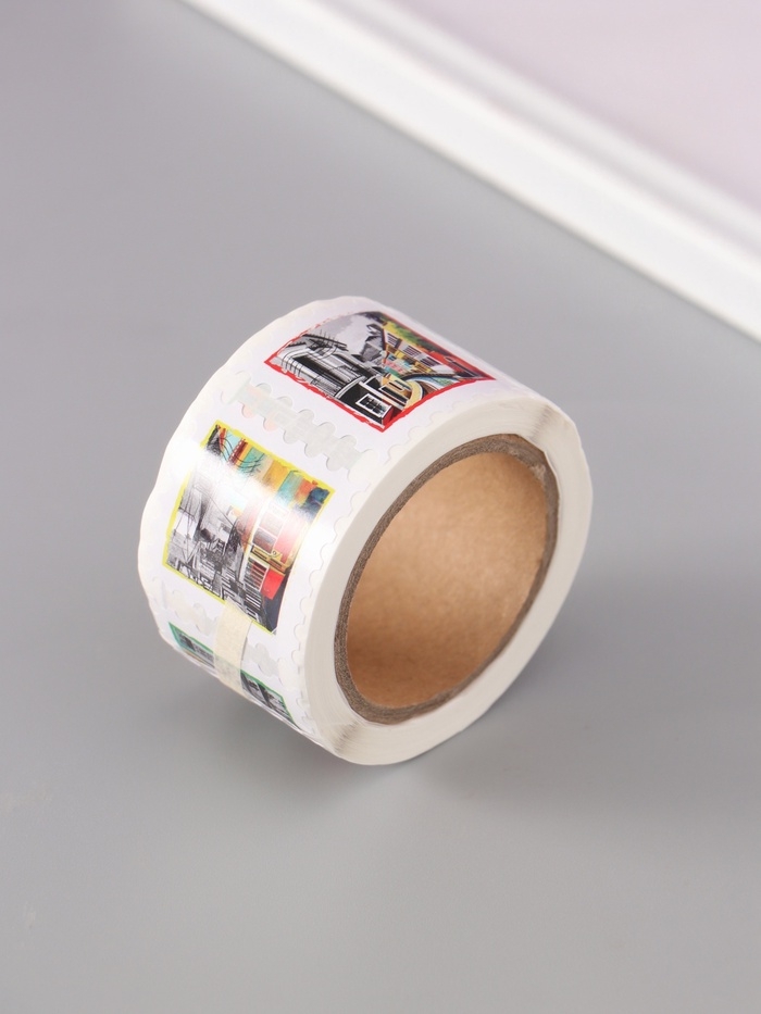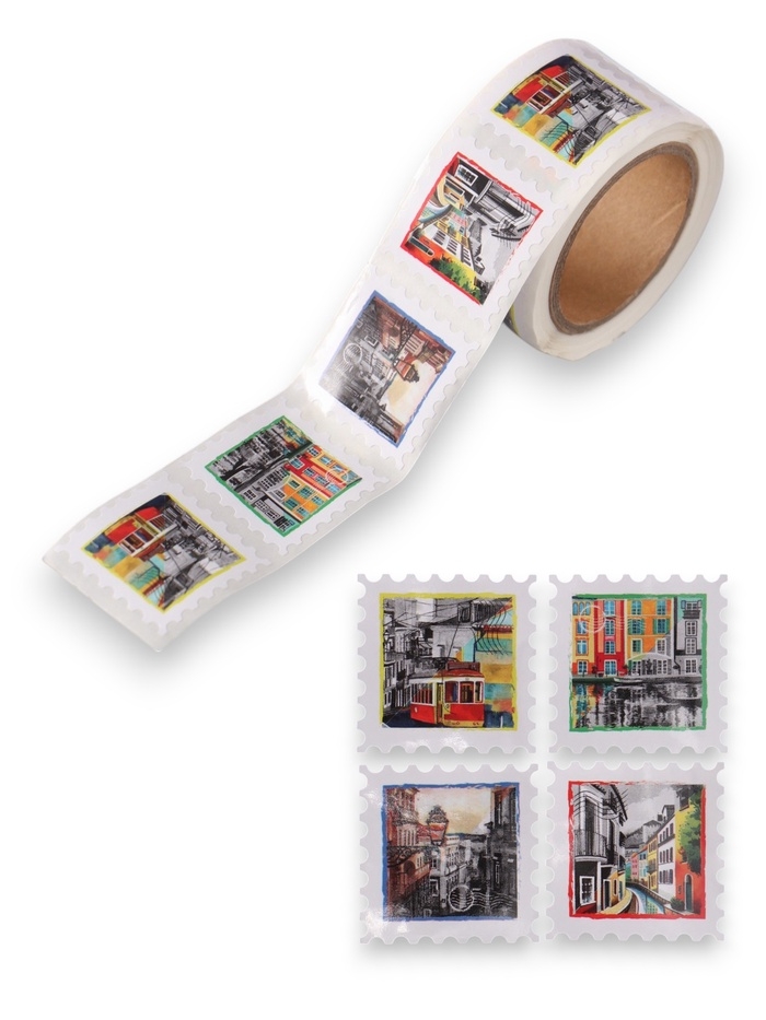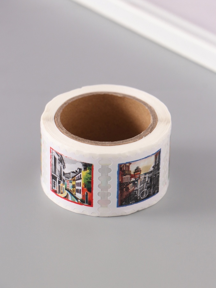 Наклейка бумага "Марки. Города" 3х3 см 200 шт в рулоне