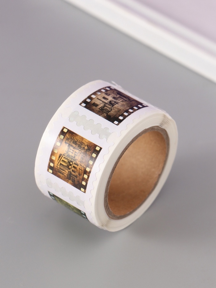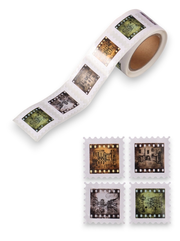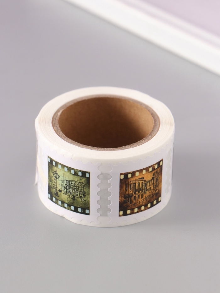Наклейка бумага "Марки. Фотоплёнка" 3х3 см 200 шт в рулоне
