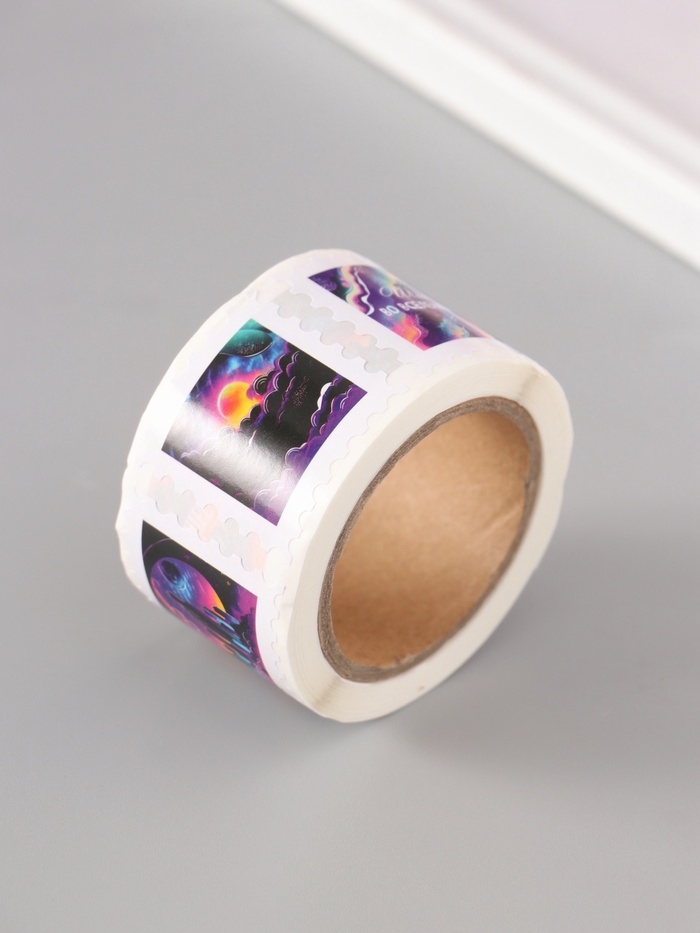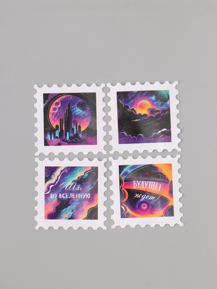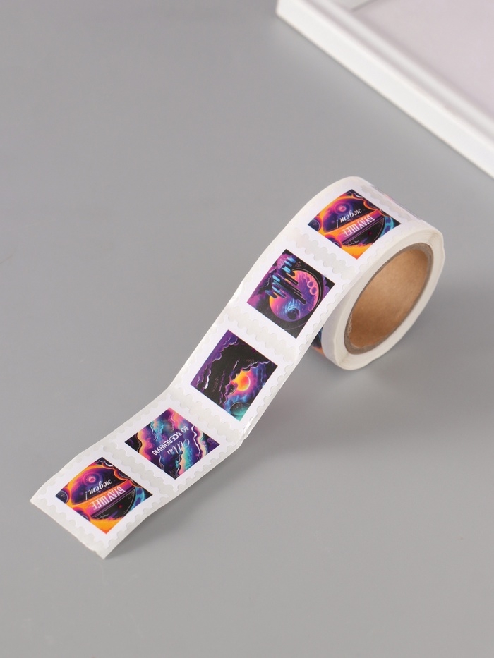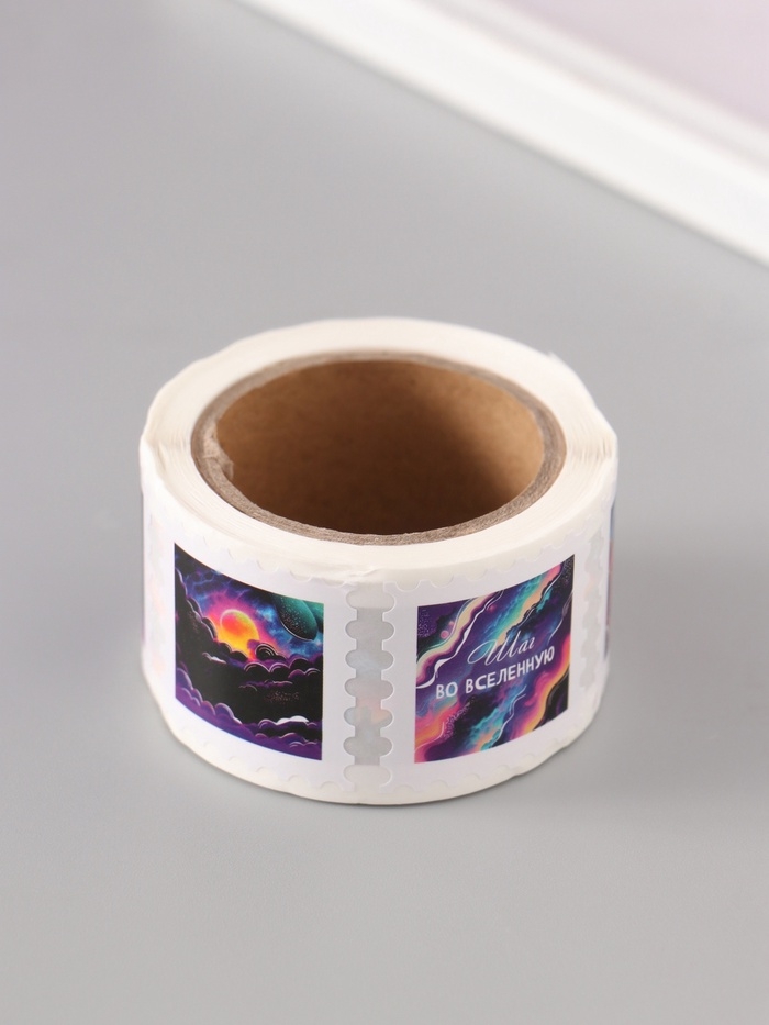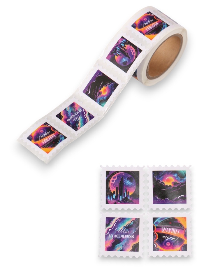 Наклейка бумага "Марки. Космос" 3х3 см 200 шт в рулоне