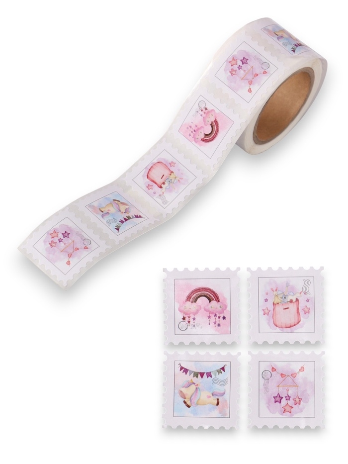 Наклейка бумага "Марки. Для малышек" 3х3 см 200 шт в рулоне