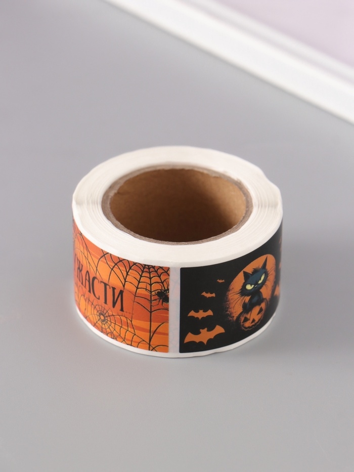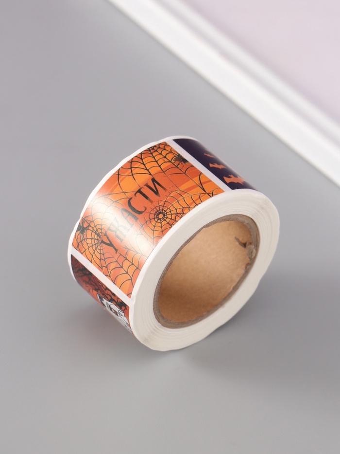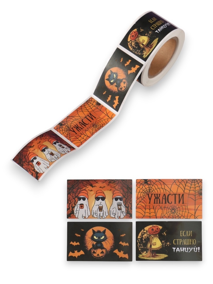 Наклейка бумага "Хэллоуин" 3х5 см 200 шт в рулоне