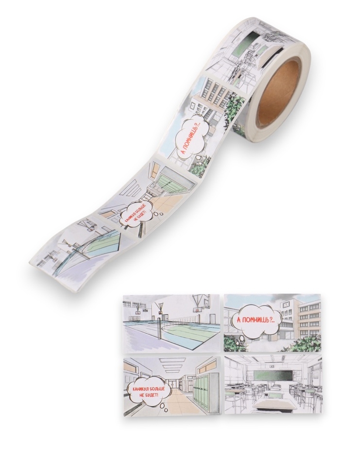 Наклейка бумага "Аниме. Школа" 3х5 см 200 шт в рулоне