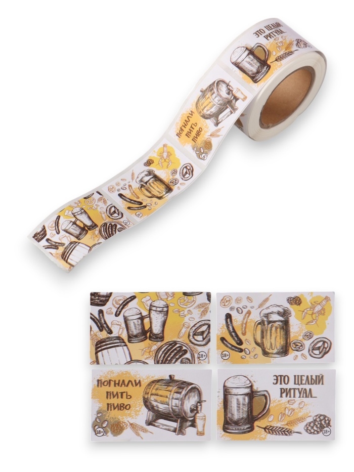 Наклейка бумага "Пиво" 3х5 см 200 шт в рулоне