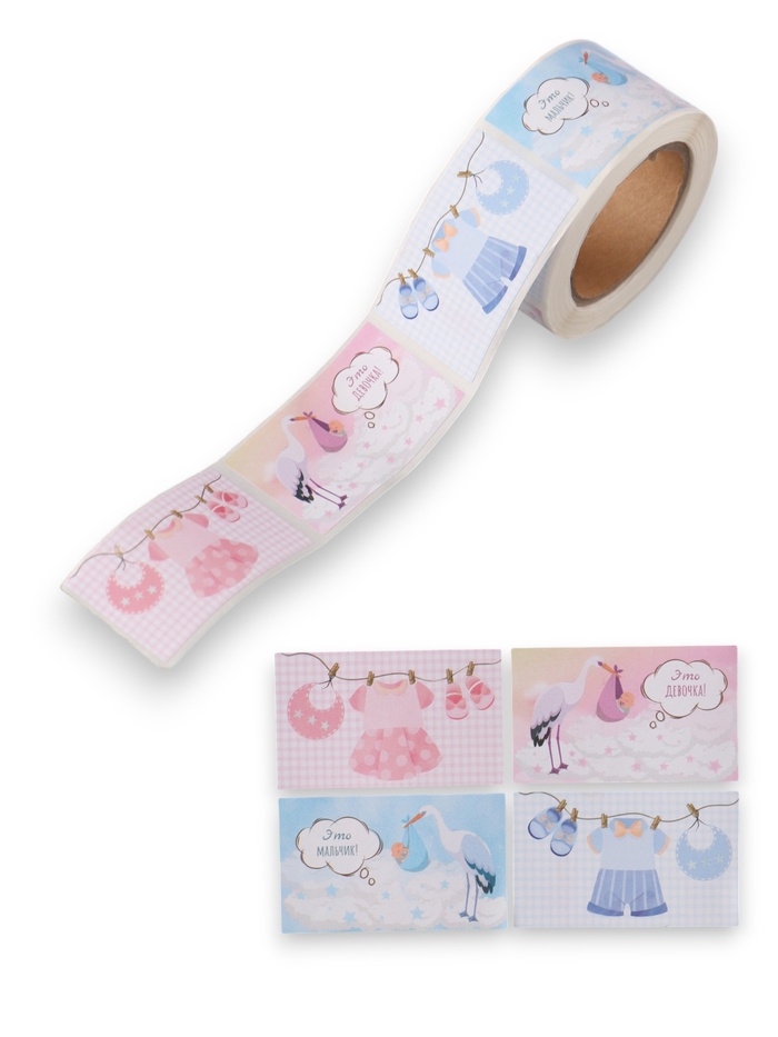 Наклейка бумага "Новорождённые" 3х5 см 200 шт в рулоне