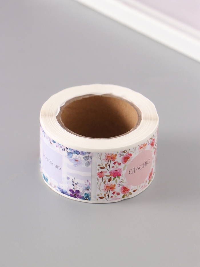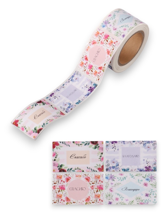 Наклейка бумага "Благодарность" 3х5 см 200 шт в рулоне