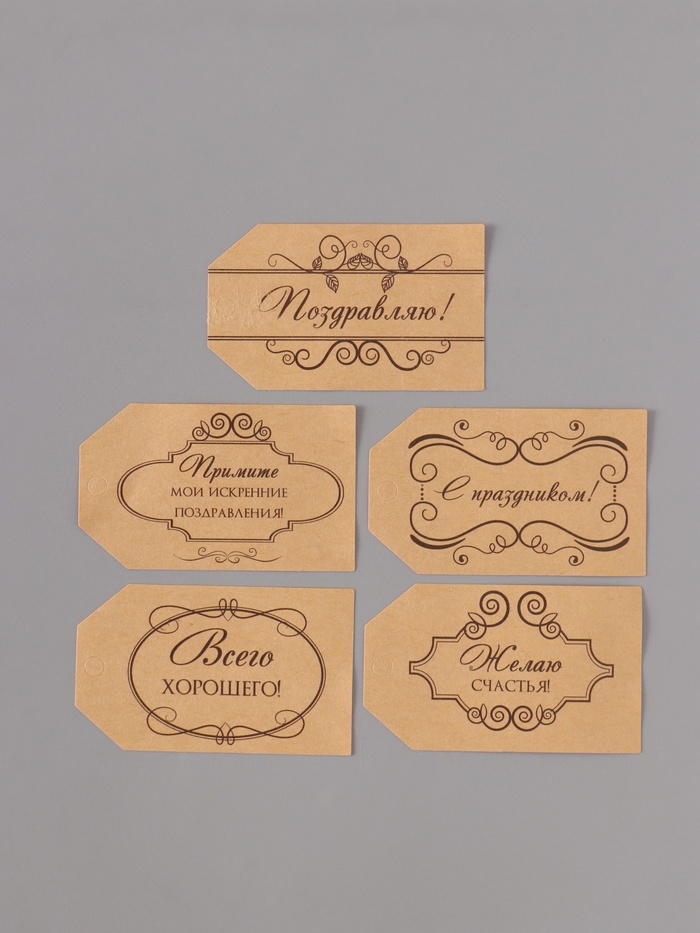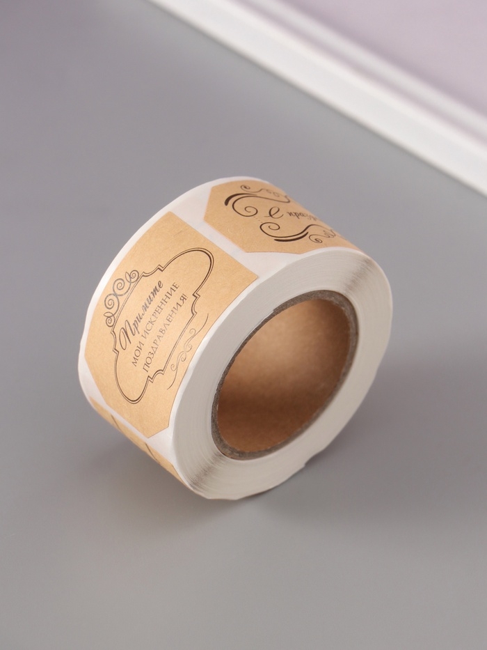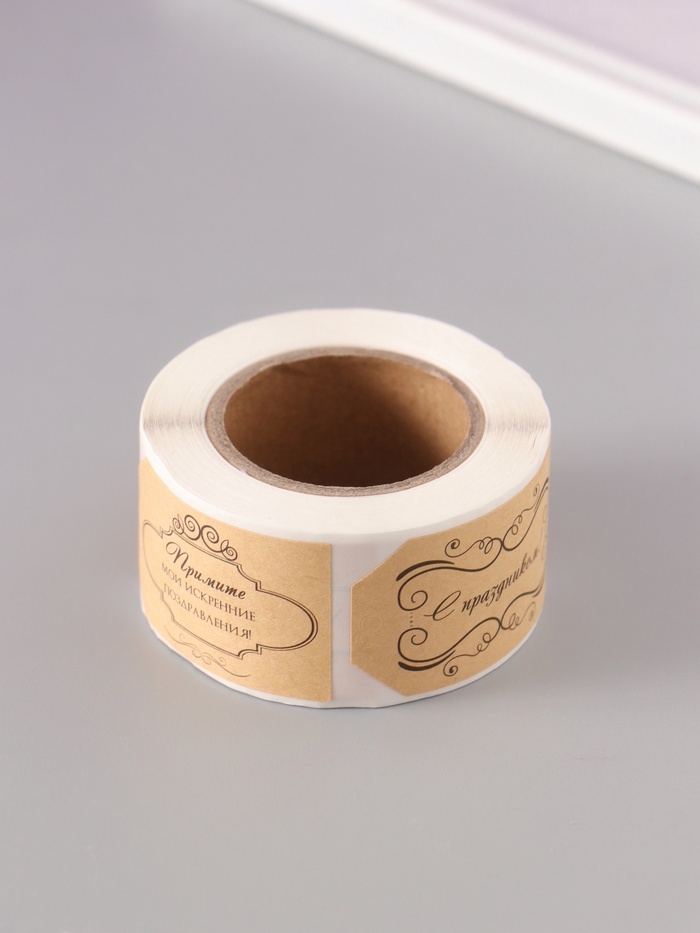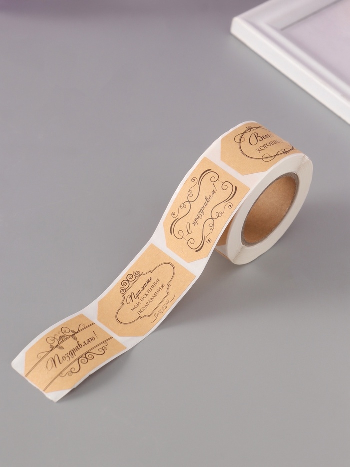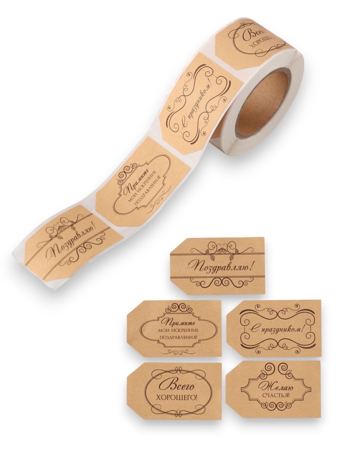 Наклейка бумага крафт "Бирки. Вензели" 3х5 см 200 шт в рулоне