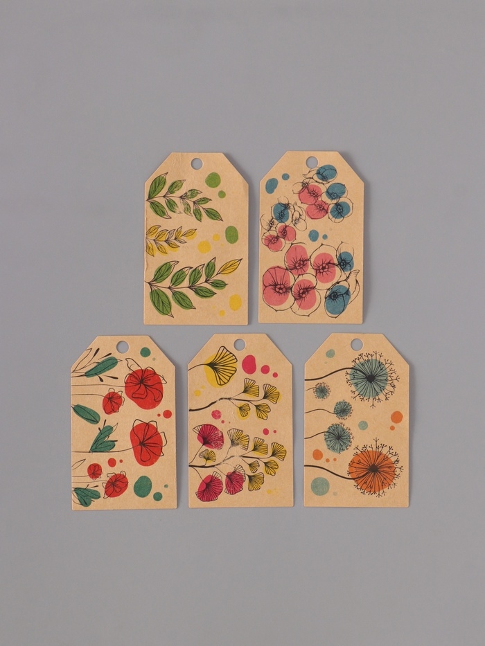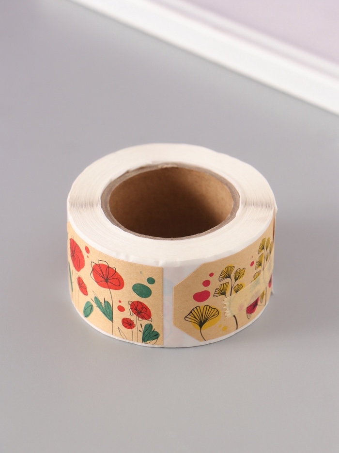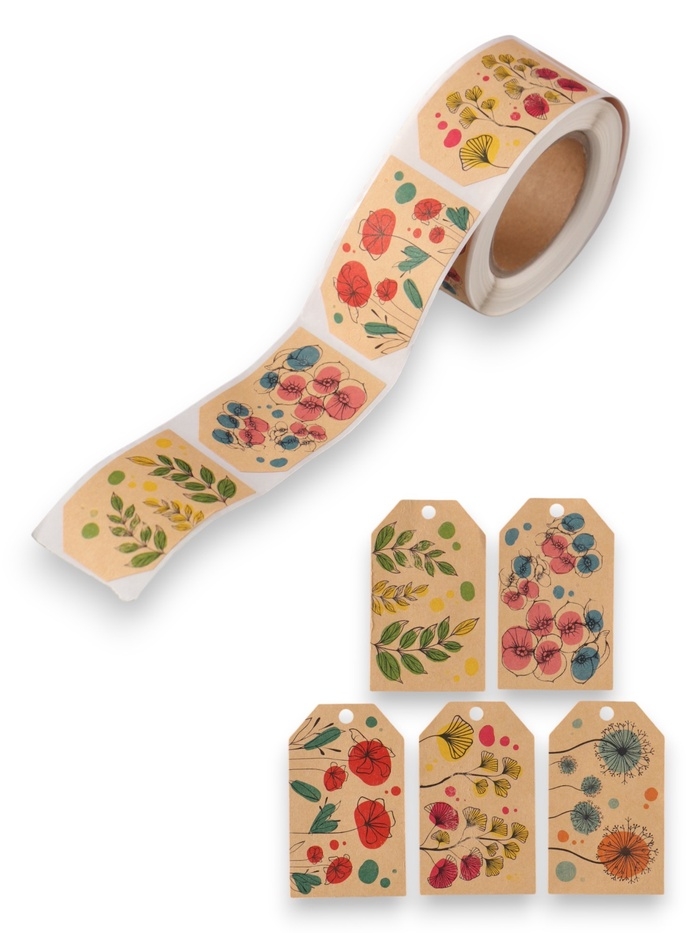 Наклейка бумага крафт "Бирки. Цветы" 3х5 см 200 шт в рулоне