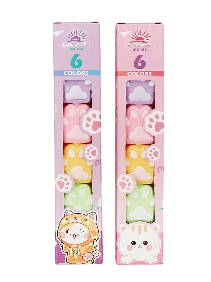 Набор маркеров-текстовыделителей 6 штук/6 цветов Лапки