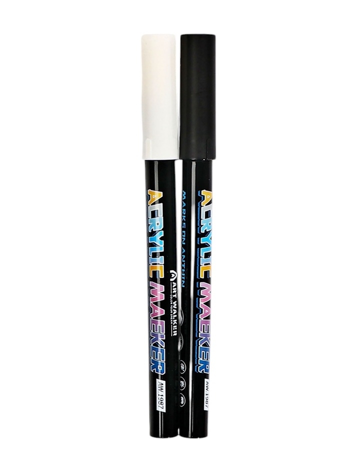 Набор маркеров акриловых 2 штуки, черный/белый, конусный наконечник 0,7мм