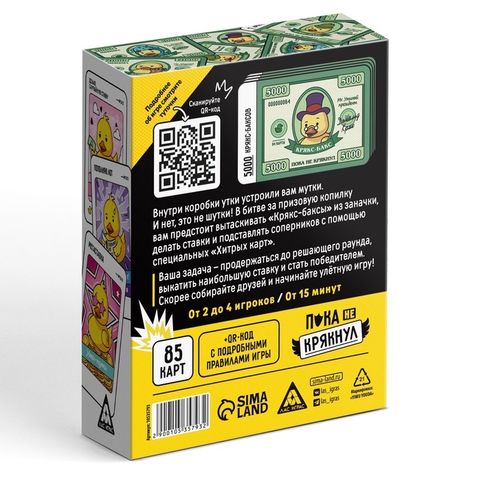 Настольная игра "Пока не крякнул", 85 карт, 16+