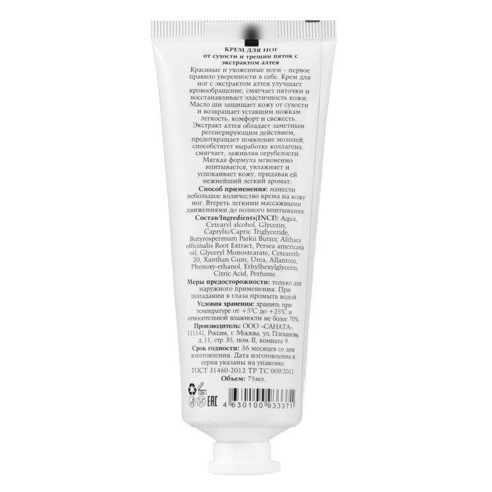 Красивые и ухоженные ноги – первое правило уверенности в себе. Крем для ног с экстрактом алтея улучшает кровообращение, смягчает пяточки и восстанавливает эластичность кожи. Масло ши защищает кожу от сухости и возвращает уставшим ножкам лёгкость, комфорт и свежесть. Экстракт алтея обладает заметным регенерирующим действием, предотвращает появление мозолей, способствует выработке коллагена, смягчает, заживляя огрубелости. Мягкая формула мгновенно впитывается, увлажняет и успокаивает кожу, придавая ей нежнейший лёгкий аромат.