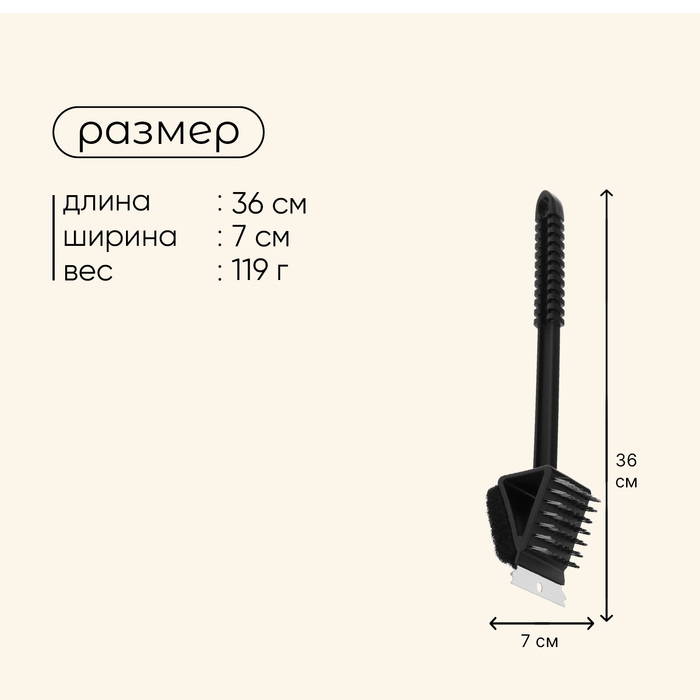 Многофункциональная щётка-скребок создана для чистки грилей, мангалов, решёток-гриль и шампуров.