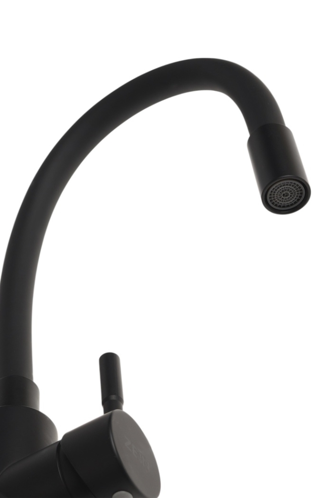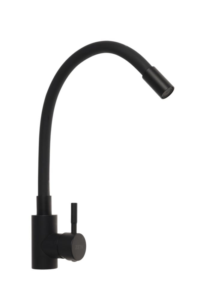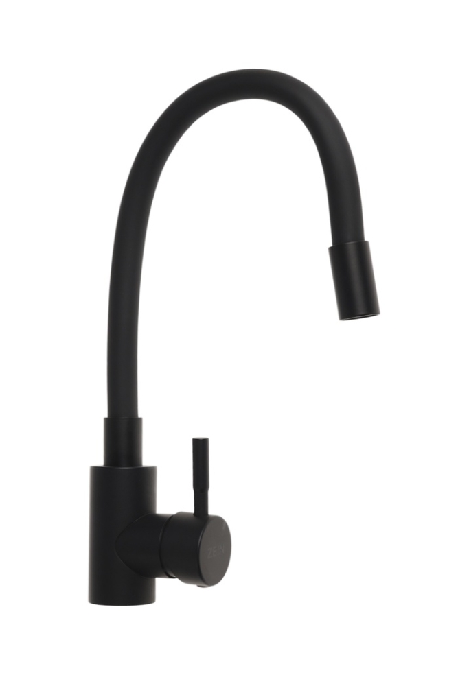Смеситель для кухни ZEIN Z2754, гибкий силикон излив, картридж 35 мм, нерж. сталь, черный