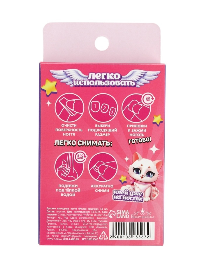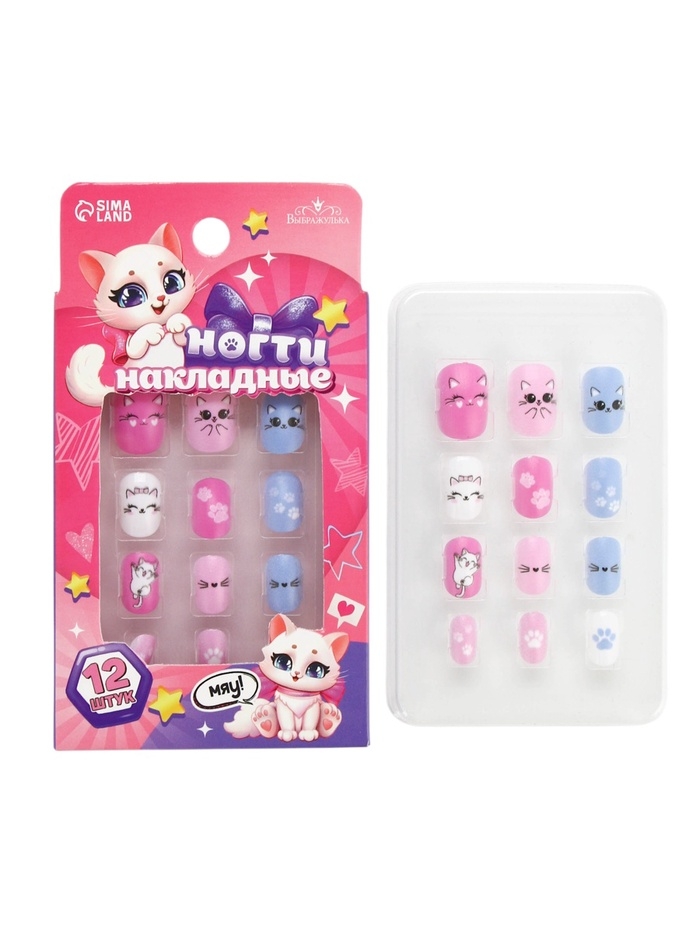 Детские накладные ногти "Милая кошечка" , 12 шт