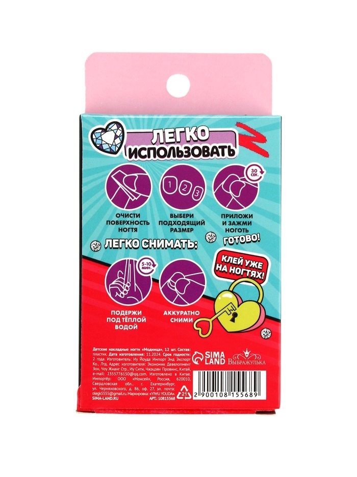 Детские накладные ногти "Модница" , 12 шт