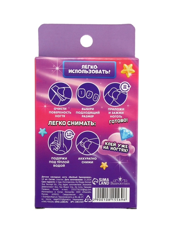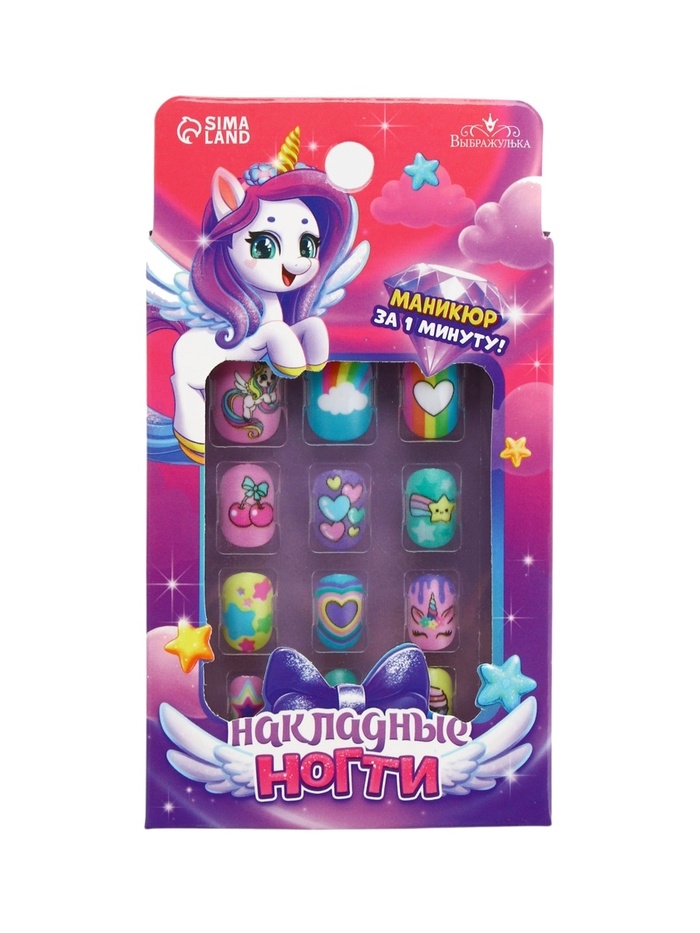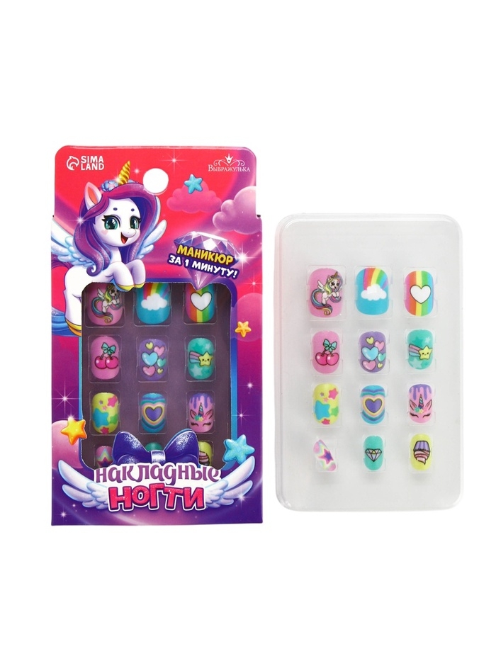 Детские накладные ногти "Веселый Единорожка" , 12 шт