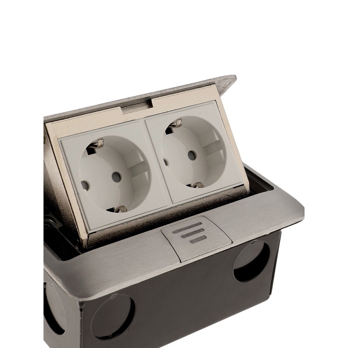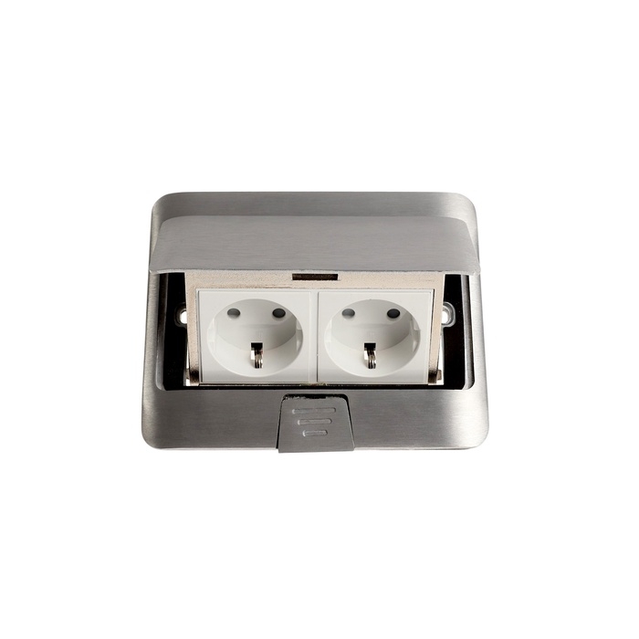 Розетка выдвижная, 16А, двухместная, цвет алюминий