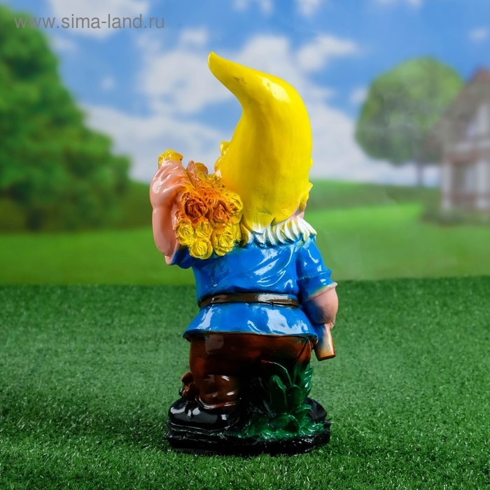 Садовая фигура "Гном с лопатой на подставке" 26х24х42см