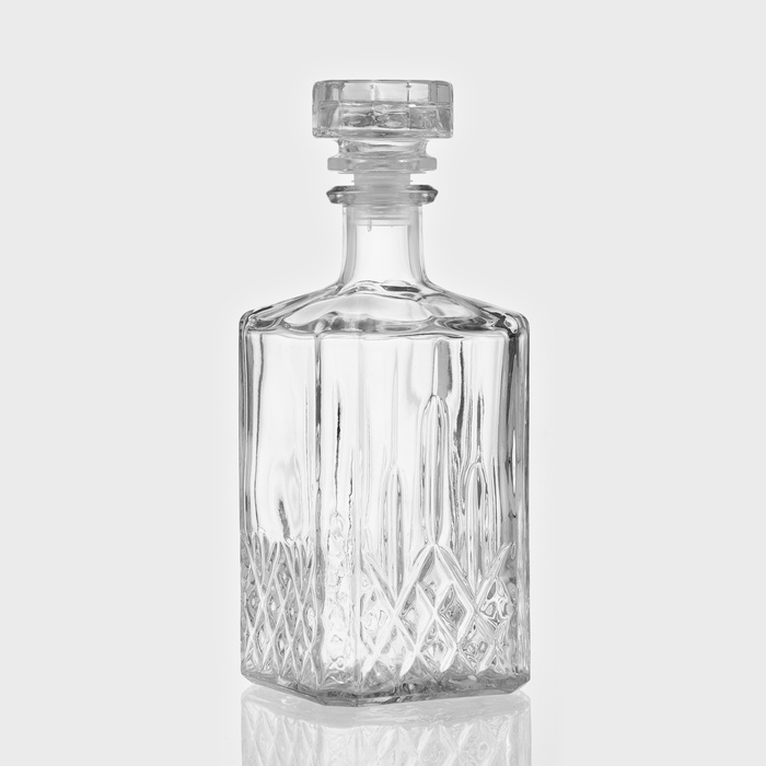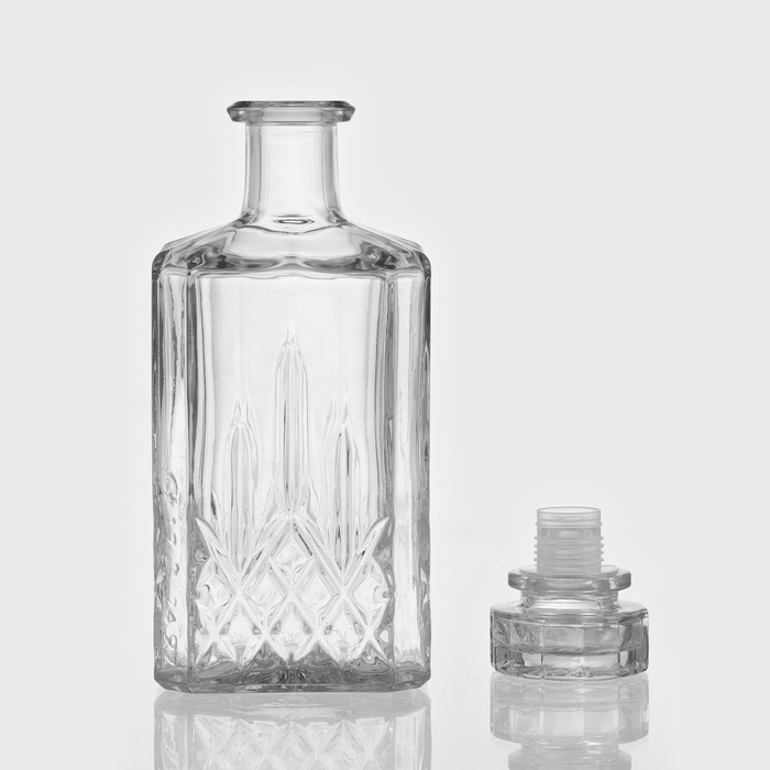 Бутылка представляет из себя классический штоф для холодных напитков. Выполненная из качественного стекла и украшена красивым рельефным узором, бутылка имеет плотно закрывающуюся стеклянную пробку, которая не позволит выдохнуться аромату напитков. Элегантный дизайн изделия украсит собой любой праздничный стол, в таком штофе вы сможете подать вино, морс, различные наливки и ликеры. За счет гладкой внутренней поверхности, изделие легко мыть.