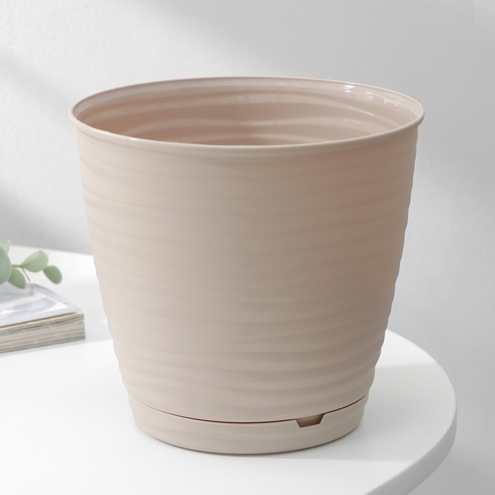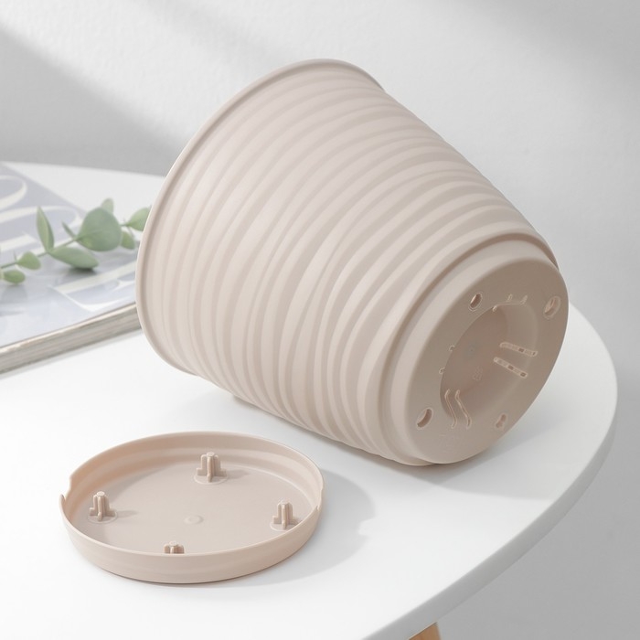 Горшок для цветов с поддоном Saffron, 1,5 л, d=14,6 см, h=13,5 см, цвет бежевый