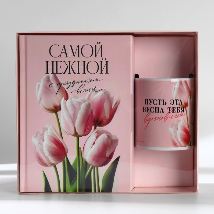 Подарочный набор: ежедневник А5, 80 листов и кружка «Пусть эта весна тебя вдохновляет»